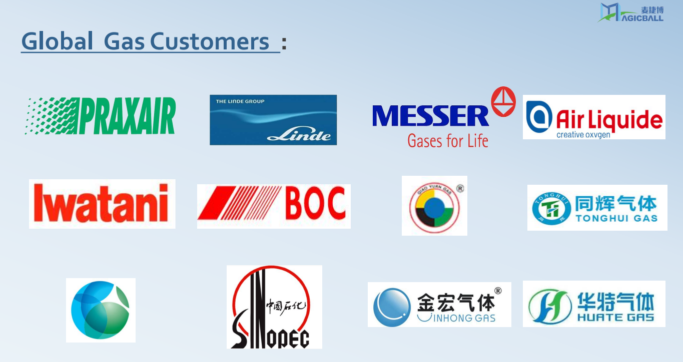 Magicball have do more business with famous gas group, such as Messer , Linde, Praxair,... and got more good feedbacks.